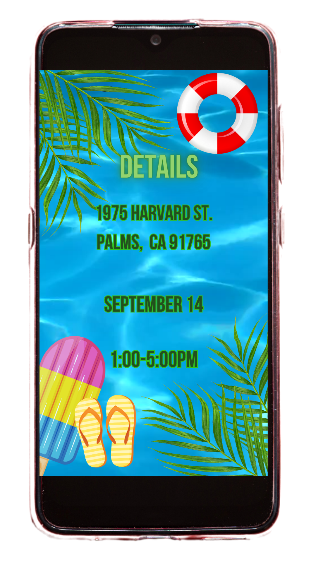 Our digital invitation is the perfect way to set the tone for your pool party! With vibrant blues, sunny vibes, and tropical touches, this will get everyone in the mood to dive in and enjoy the day. This playful invite promises an unforgettable celebration filled with sun, laughter, and good times. Get ready to make waves—your perfect poolside party awaits!